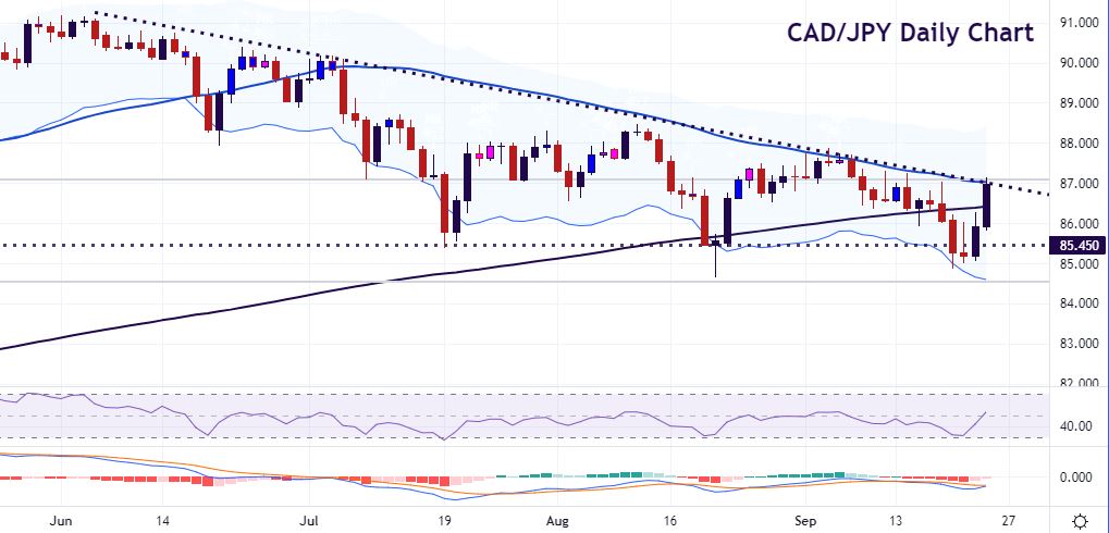 CAD/JPY rebounds into trendline resistance