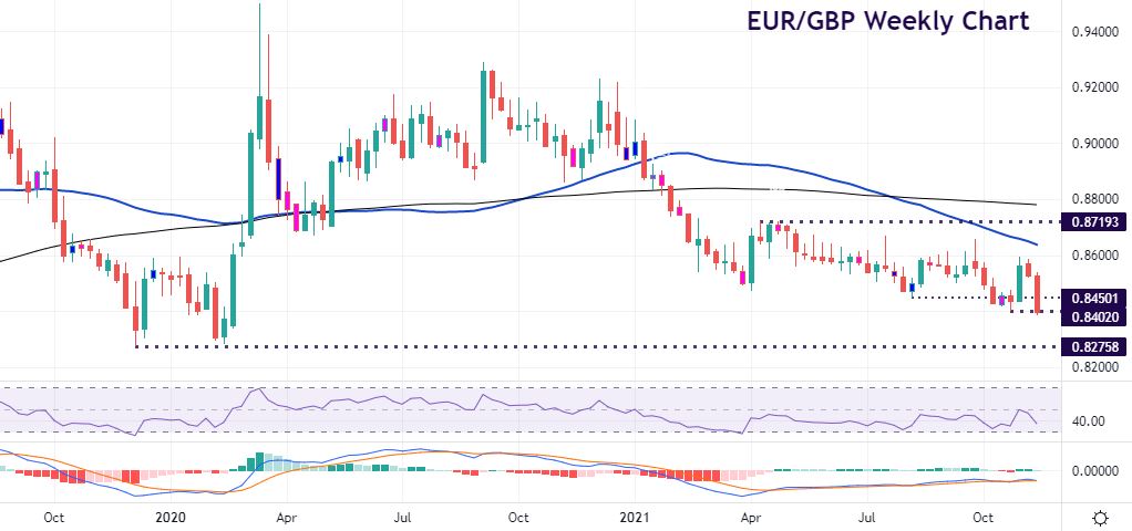 Brexit issues and the trigger of Article 16 by the UK could slow any descent in this cross. The October low is certainly a key level that must hold in the near term.
