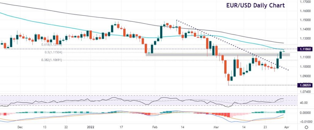 While the peace talks optimism may be fading, the euro is continuing to make back some of its losses since Russia entered into Ukraine in late February. News of oil potentially being released by the US is a positive due to the region’s high dependence on energy exports.