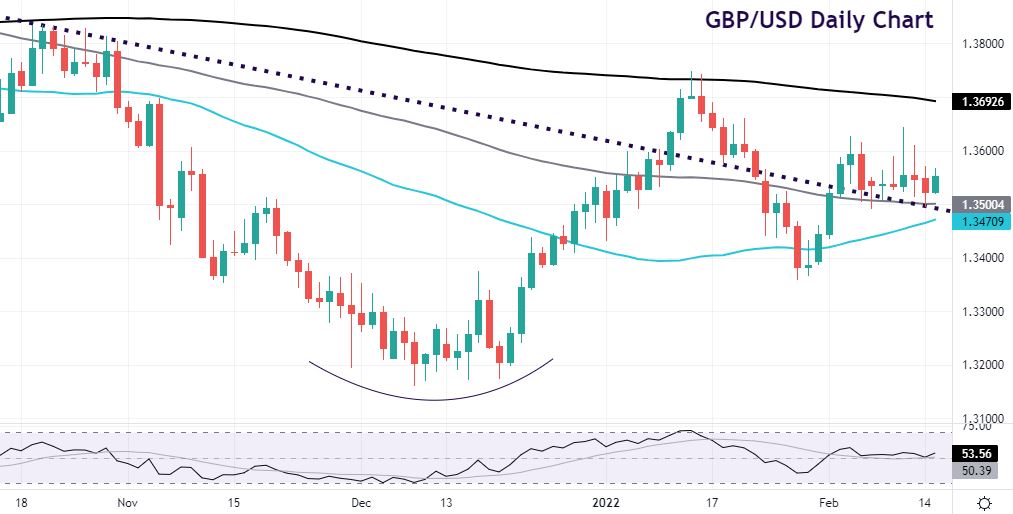 This week sees the mid-month data dump in the UK with today’s jobs data continuing to support more rate hikes from the Bank of England in the coming months. The unemployment rate held steady and in line with estimates at 4.1%, while wage growth accelerated in December, though real wages are falling. We get CPI data tomorrow with the headline expected to rise to 5.5%, after the 5.4% print in December, a near 30-year high.