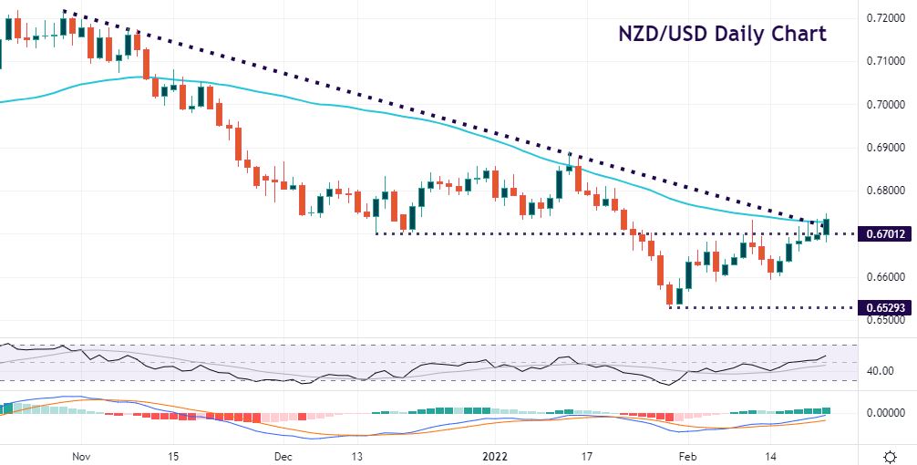 For sure, the recent re-opening of the economies down under and of the country’s borders are giving a boost to regional confidence. The RBNZ meeting overnight may also have helped, with the bank expected to hike for a third time, bringing the cash rate to 1%.
