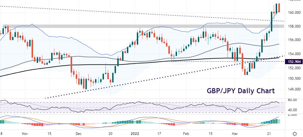 Overbought GBP/JPY pulls back after breaking above 161