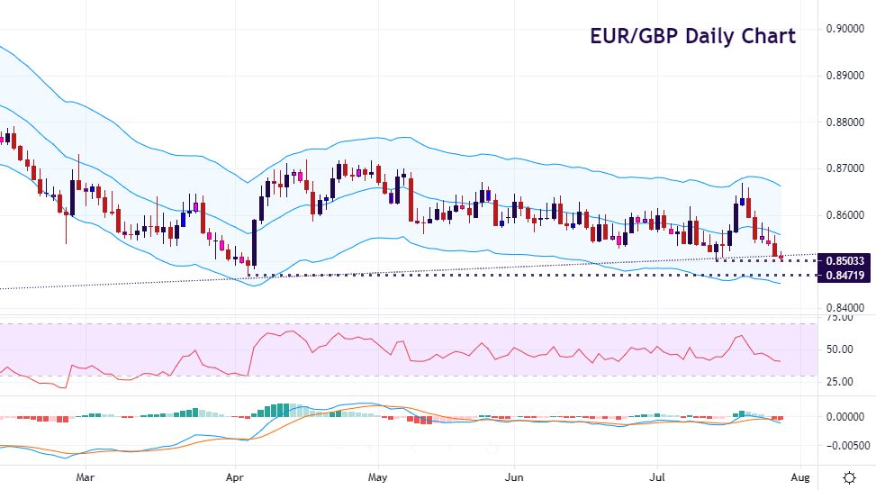 GBP is the best performing major currency this week as the “English Experiment” confounds the doomsday sceptics who have been anticipating more Covid waves and potentially more lockdowns. Sterling is also slightly detached from the current global risk dynamics with the Chinese stock rout helping and hindering the more classic risk off/on currencies. Next week’s Bank of England meeting should see the MPC stick to their (slightly dovish) guns with the end of the government’s furlough scheme in September being a key marker for a more optimistic outlook.