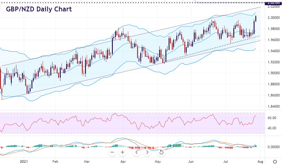 We wrote about the high chance of more upside in GBP/AUD a few weeks back and this is now trading in overbought territory. On the other hand, GBP/NZD has only made a strong break higher over the last couple of sessions. Prices have been trading in a steady upward channel since the December lows. The series of higher highs and lows was broken at the end of March, but prices retraced back into the bullish channel which is still holding pretty well. The bulls now look to be firmly in charge after hitting levels not seen since August last year. The highs from that month sit at 2.0270/71 and with momentum indicators not overbought, buyers will aim for the top of the channel and this higher level. Late June and mid-July peaks around 1.9957/61 offer near-term support if we cannot close firmly above the June and July highs around 1.99/5762.