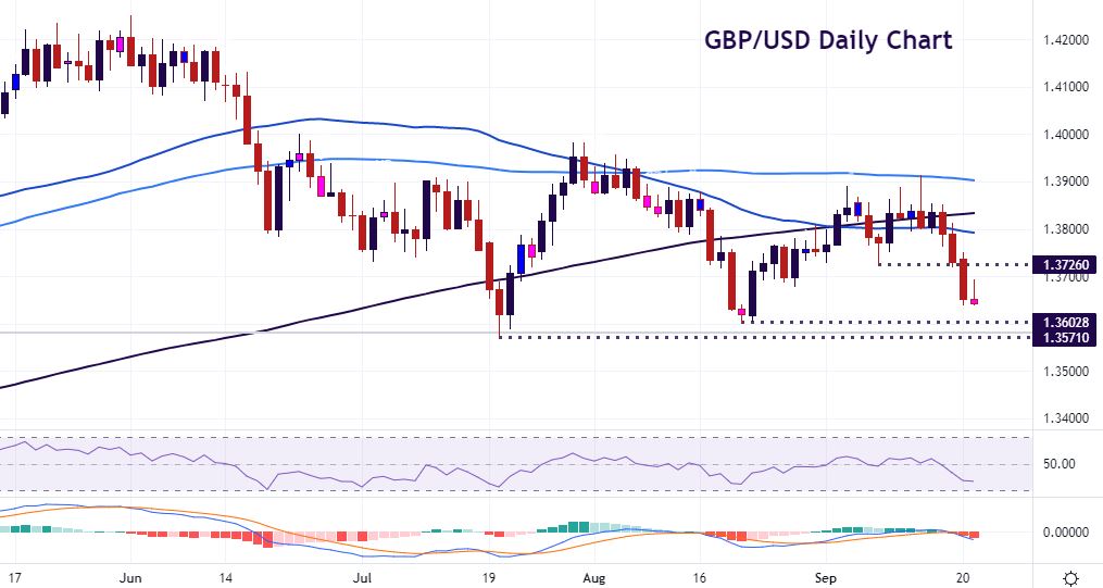 After trading down to its weakest in four weeks yesterday, GBP/USD looked to be clawing back some losses earlier today. But bearish momentum is still strong with the Bank of England unlikely to pivot to a hawkish stance on Thursday. On the other hand, the Fed may position for a taper announcement and revise its rate outlook upwards.