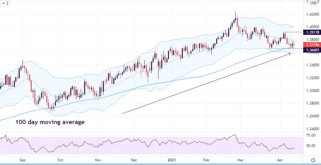 Cable is trading in a narrow band but the 100-day moving average just below 1.37 is proving strong support. As long as this holds, the long-term bullish trend is expected to resume soon.